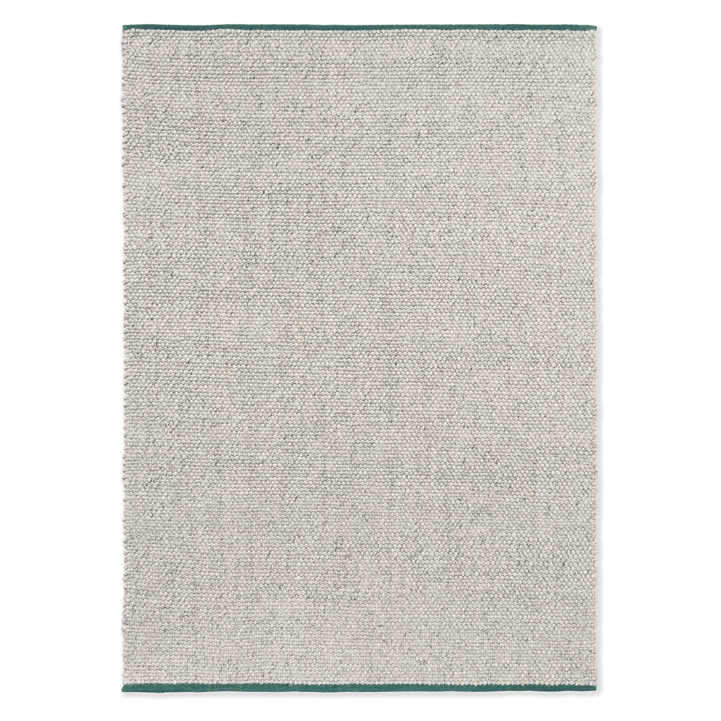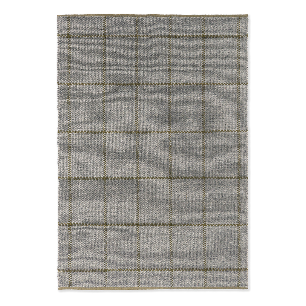 Het Craft Matter vloerkleed is met de hand geweven volgens een traditionele dubbele weeftechniek. De onderzijde van katoen zorgt voor stabiliteit en stevigheid, terwijl de bovenzijde van ongeverfde en geverfde wol een subtiel ruitdessin vormt. De fijne randen zijn afgewerkt in contrasterend katoen, wat het kleed een moderne en grafische uitstraling geeft.